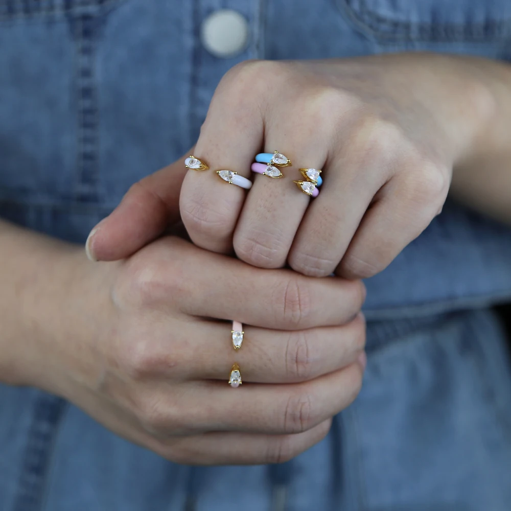 Женское регулируемое кольцо с эмалью, разноцветное Открытое кольцо с двумя фианитами