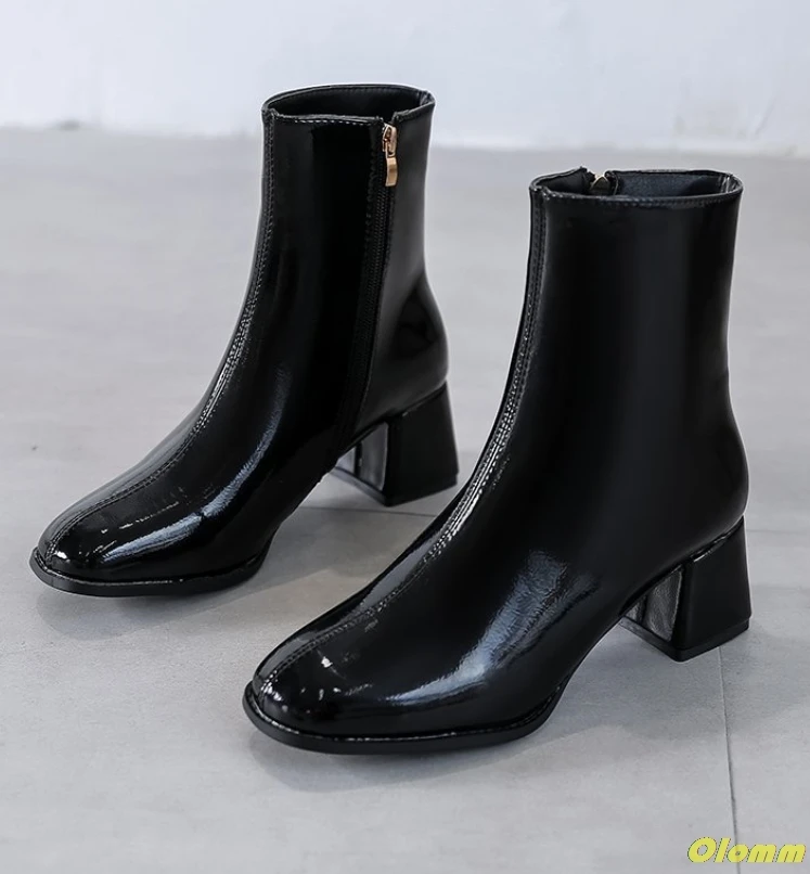 Женские ботильоны из мягкой лакированной кожи, черные или белые ботинки на молнии, с высоким берцем, Осень-зима 2021
