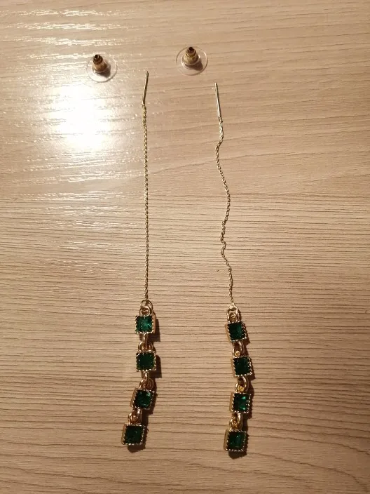 Смотрятся отлично. Не знаю как поведёт себя металл и как будут реагировать уши на него, но пока все отлично. Единственное, на одной сережке цепочка была как будто вся склеенная. Я её привела в порядок, надеюсь не обломится.