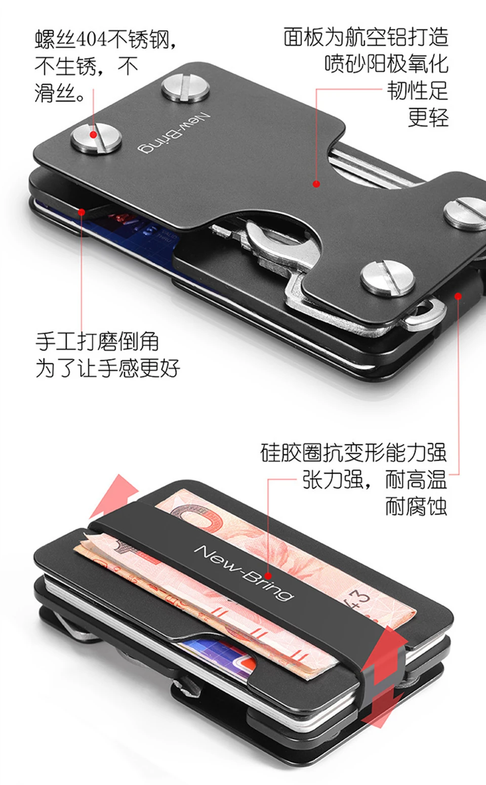 Чехол-кошелек для ключей NewBring, металлический, с открывалкой для бутылок, многофункциональный, с отделением для карт и защитой от кражи, ID держатель для карт