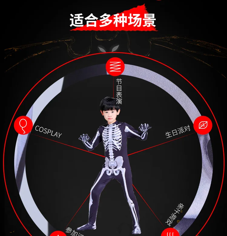 Детский костюм на Хэллоуин с рисунком скелета, страшная игра, вечер...