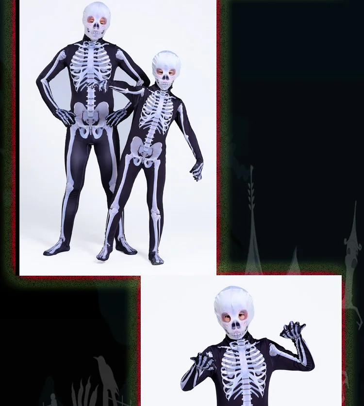 Костюм на Хэллоуин со скелетом, одежда для косплея для родителей и ...