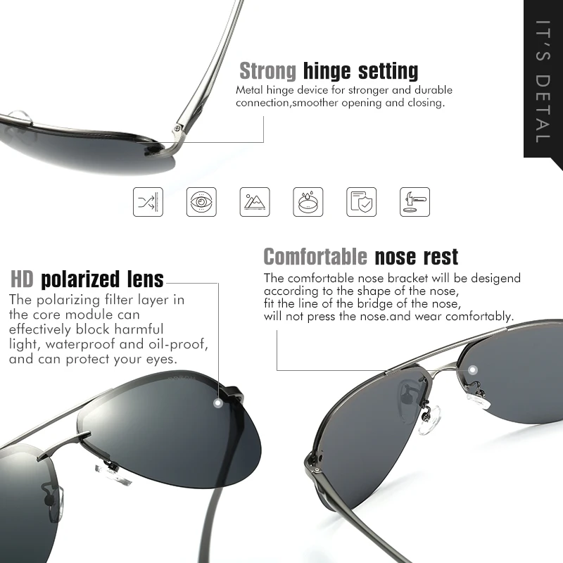 Солнцезащитные очки без оправы UV400 для мужчин и женщин, Поляризац...