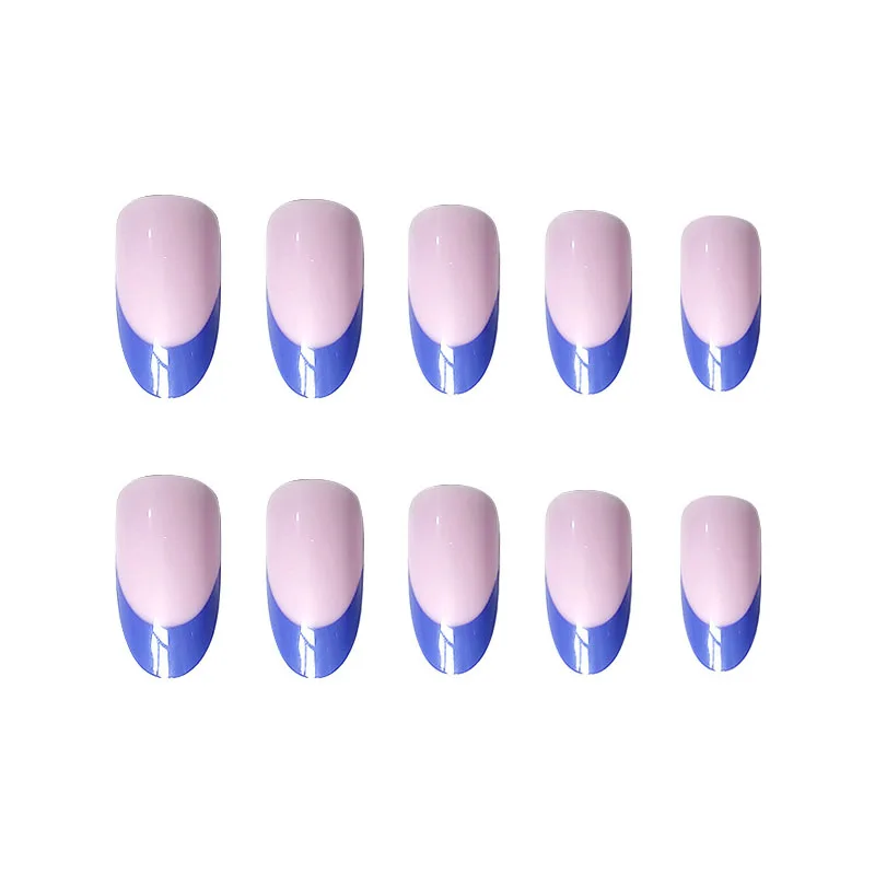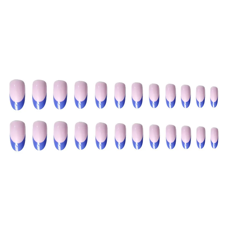 Накладные ногти 24 шт.компл. простые круглые Синие французские накладные ногти в стиле OL с клеем искусственные ногти для украшения ногтей накладные ногти