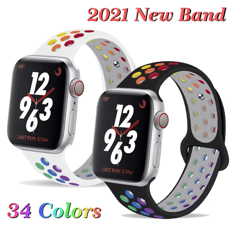 Ремешок силиконовый Радужный для Apple Watch Band 44 мм 40 мм, смен...