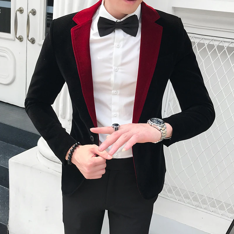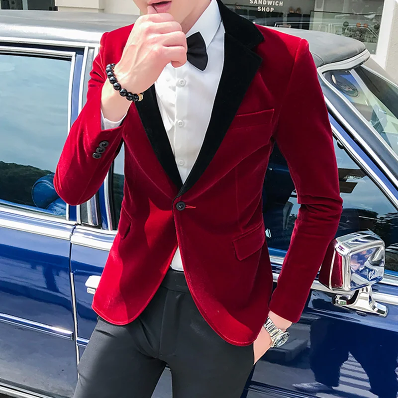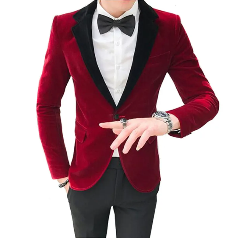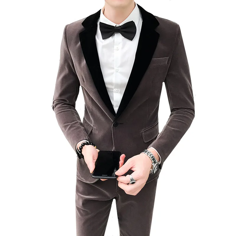 Мужской модный трендовый Бархатный смокинг для жениха приталенное с...