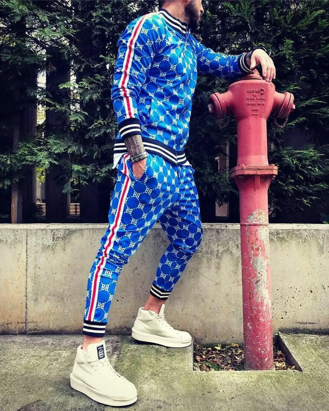 Мужской спортивный костюм весна-осень, модный клетчатый спортивный ...