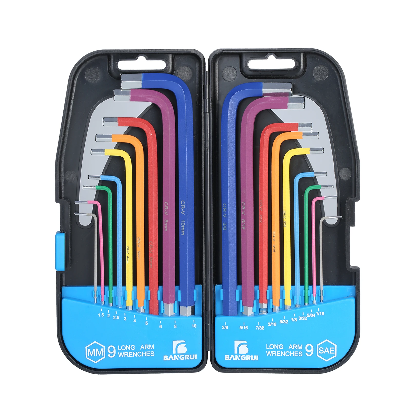 Особенности:Набор гаечных ключей промышленного класса-изготовлен из термообработанной хромованадиевой стали с максимальной прочностью и надежностью, с хромовым и красочным покрытием, практичным для защиты от коррозии и ржавчины, профессиональный и долговечный.Точное мастерство -- точный размер с цветовой кодировкой для быстрой и легкой идентификации, скошенные прямые концы обеспечивают плотное прилегание и плавно вставляются в теплоснижение износа застежки. Длинная рука с разноцветной матовой текстурой для удобного захвата даже при жирных и грязных руках.Профессиональный дизайн-длинная рукоятка обеспечивает расширенный охват, увеличенный рычаг и крутящий момент. Шариковый конец для доступа к Винтам с крышкой гнезда до угла входа 25 °, что обеспечивает более легкий доступ к труднодоступным местам и упрощает регулировку под любым углом.Метрический и звездный ключ-набор ключей L включает в себя 9 шт. метрических шариковых наконечников шестигранных ключей, 9 шт. Torx ключ Звездный набор ключей, все они хранятся в удобном пластиковом чехле с ручкой для переноски, дизайн на ходу для удобной переноски и использования.Универсальное применение-набор профессиональных метрических шестигранных ключей из 18 шт. легко снимает и устанавливает большинство винтов с торцевыми цоколями, которые можно найти в автомобилях, мебели, оборудовании, велосипеде, бытовой технике, музыкальных инструментах, ремонте игрушек и т. д.Спецификация:Цвет: 9 цветов, цвет sМатериал: CRV Сталь с термообработкойКоличество шестигранных ключей: 18 шт.Набор включает:Набор метрических шестигранных ключей 1,5, 2, 2,5, 3, 4, 5, 6, 8, 10 ммНабор ключей Star T10, T15, T20, T25, T27, T30, T40, T45, T50Упаковочный лист:18 * шестигранный ключ1 * контейнер