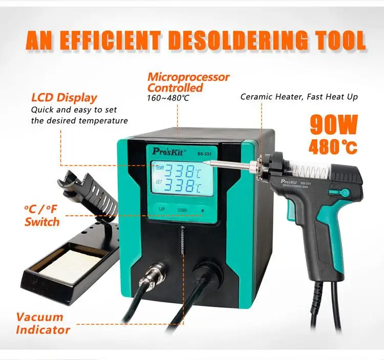 Pro'sKit SS-331H ЖК-цифровой электрический отсасывающий насос Антистатическая Высокая мощность сильный всасывающий автоматический спящий вакуумный припой присоска пистолет