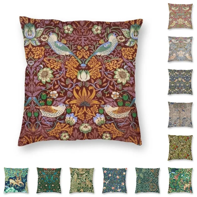 Роскошная красная наволочка для дивана в гостиную с изображением Вильяма Морриса клубники