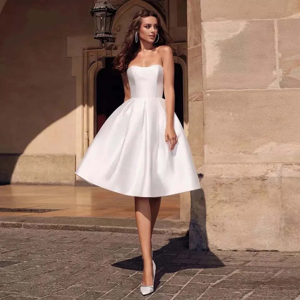 Короткие свадебные платья, белые, с открытой спиной, до колена, пляжные платья невесты, платья принцессы для свадьбы, вечеринки, с карманами