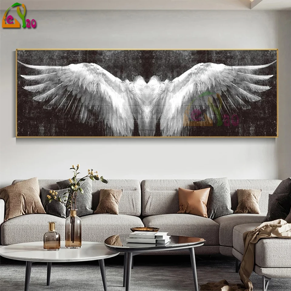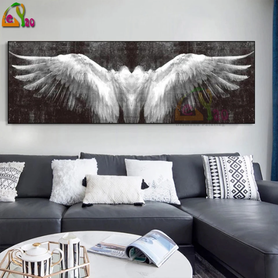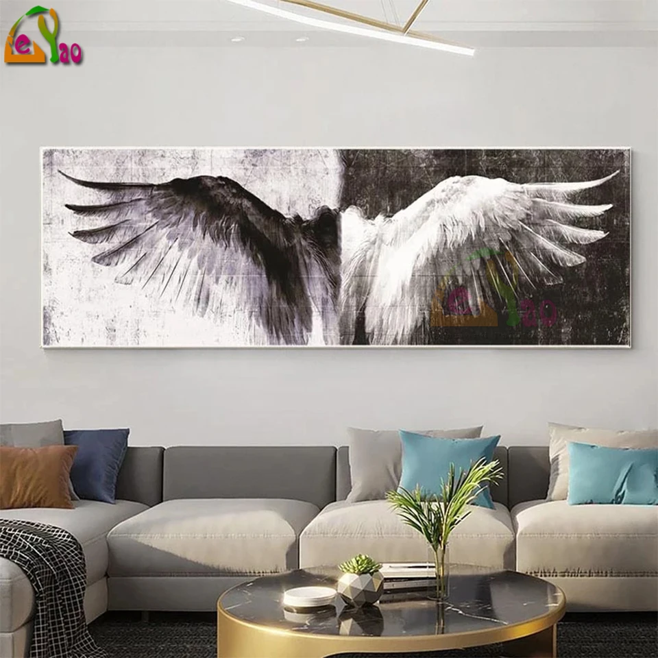 Черно-белые крылья Ангела 5d Diy Алмазная картина винтажные абстрактные крылья художественные картины для мозаики набор крестиков домашний декор