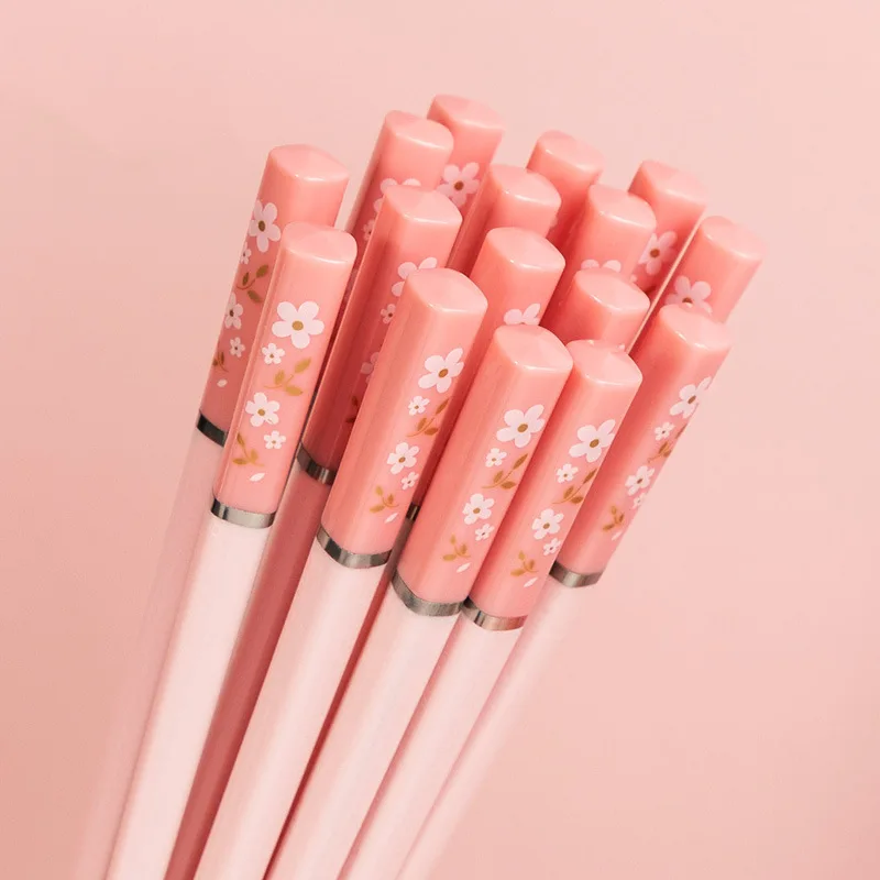 1 пара китайских металлических палочек для еды из нержавеющей стали с цветком вишни кухонные домашние противоскользящие палочки для суши