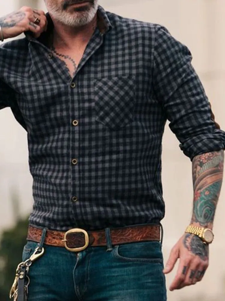 Рубашка мужская джинсовая в клетку, с длинным рукавом, в западном стиле