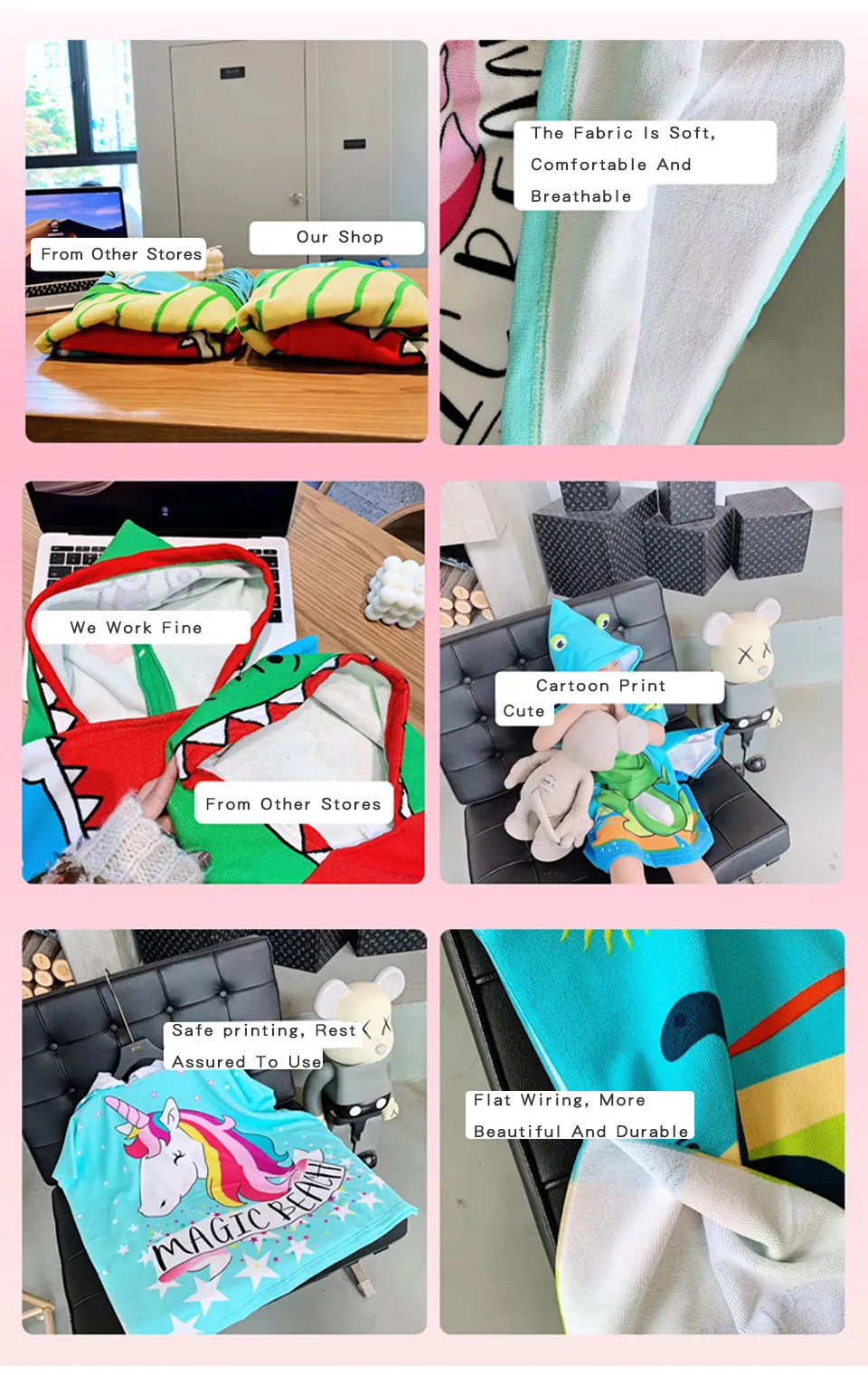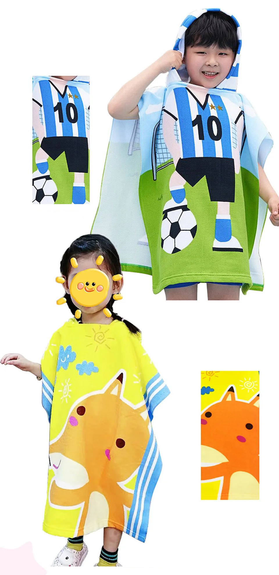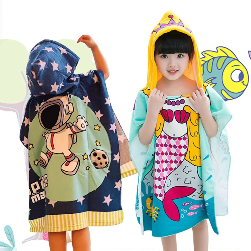 Детский мультяшный детский плащ с капюшоном, пляжное полотенце для ...