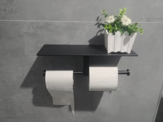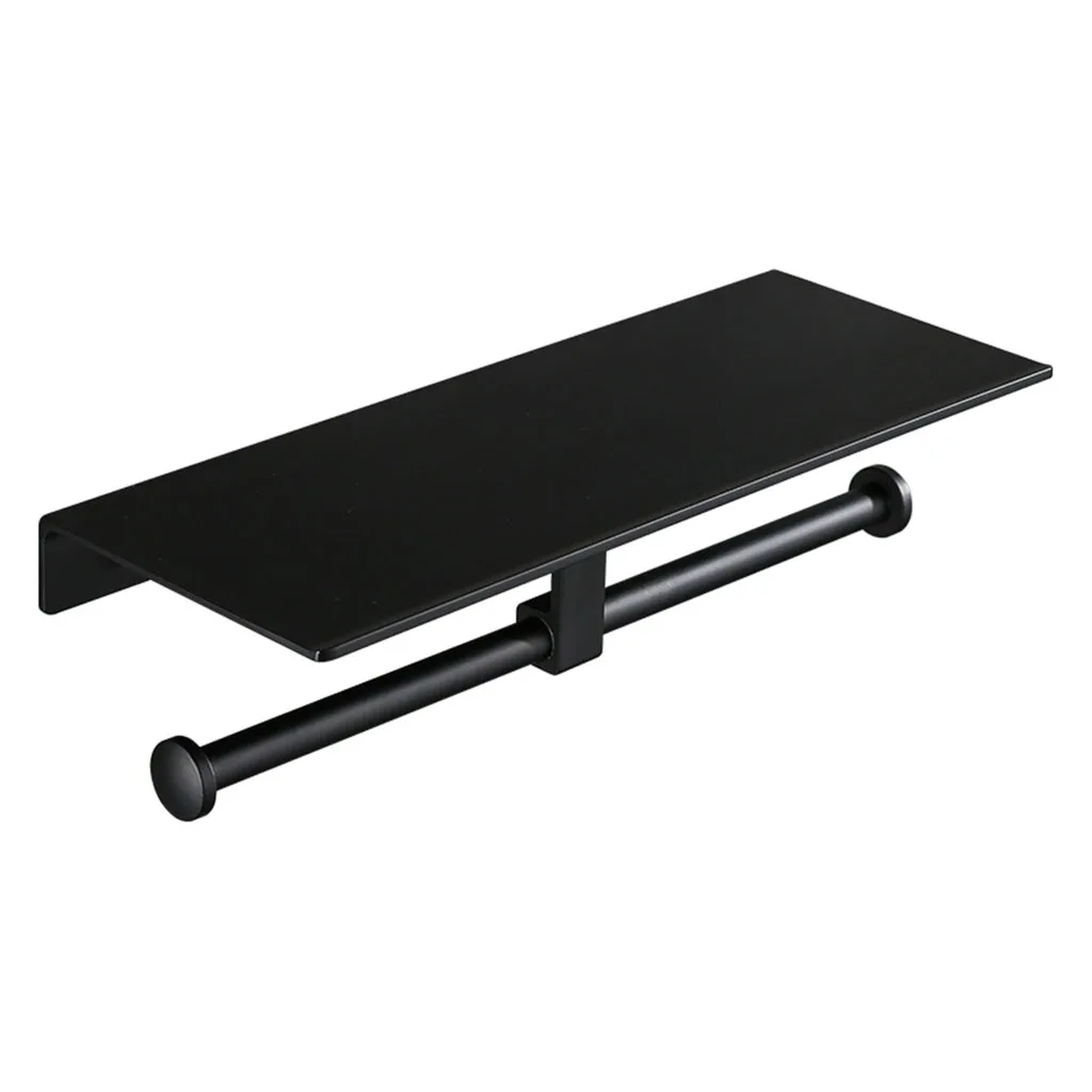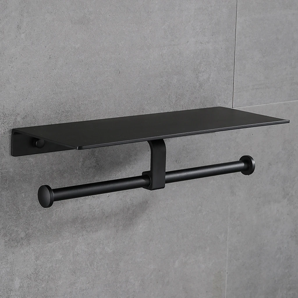 Двойной держатель бумаги в космическом алюминиевом черном цвете, настенные аксессуары для ванной комнаты, стойка для телефона, полка для туалета, держатель рулона