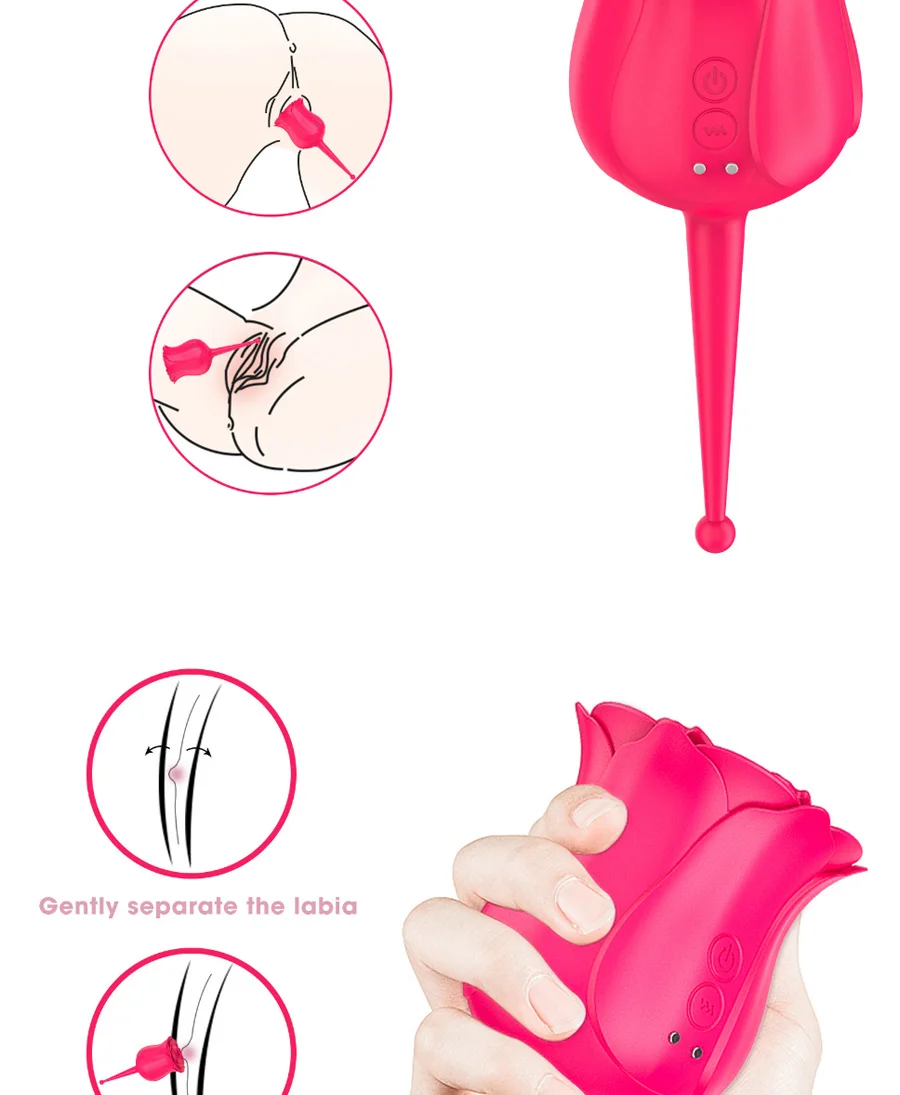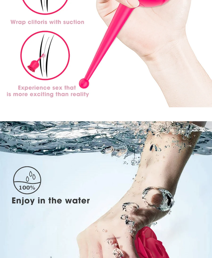 Восхитительный маленький вибратор для сосания розы в форме розы, милый внешний вид позволяет легко носить с собой, и вы можете испытать невероятные ощущения орального секса в любое время.