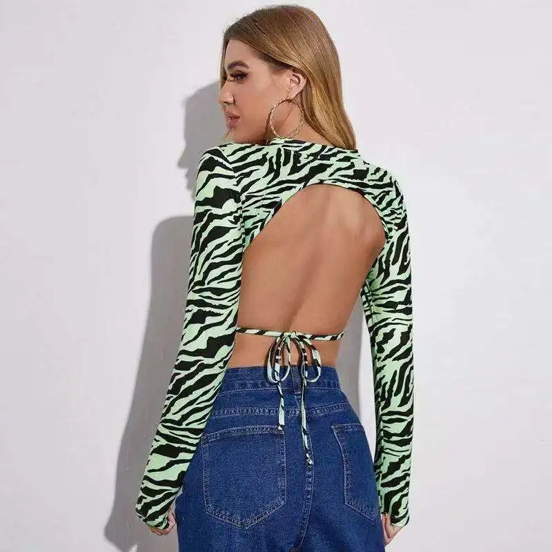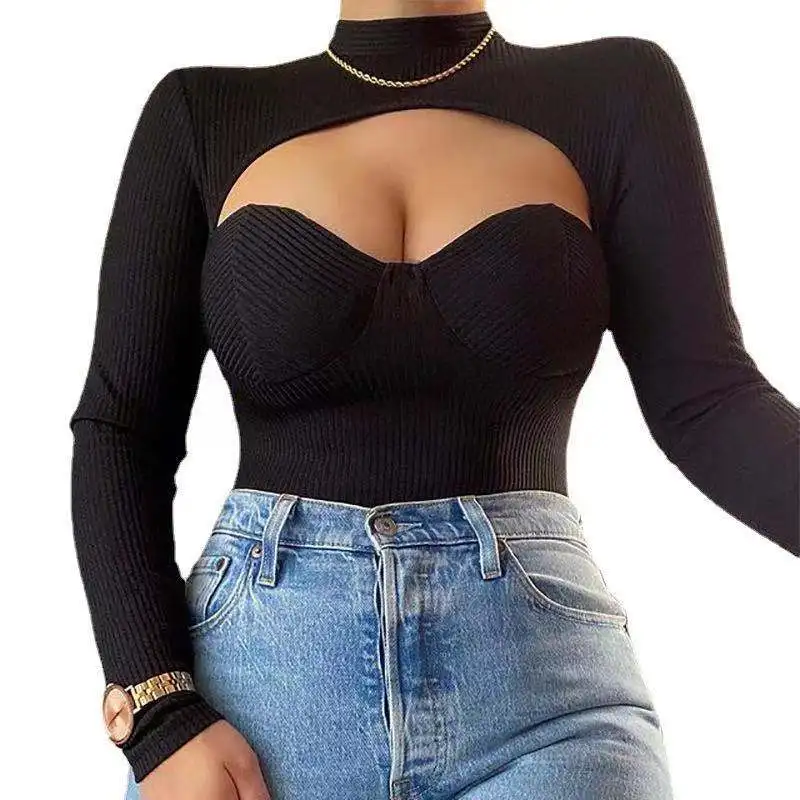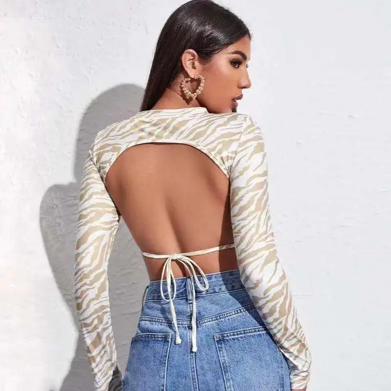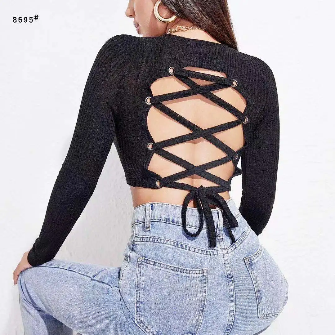 Женская футболка с длинным рукавом, открытой спиной и вырезами