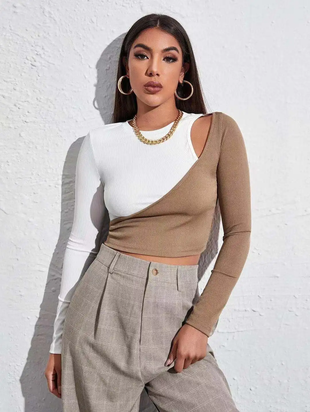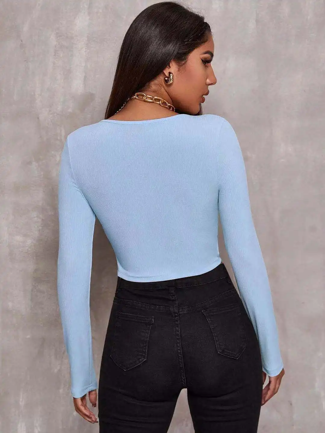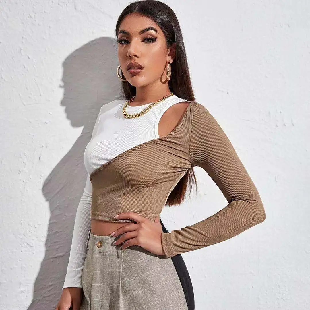 Женская футболка с длинным рукавом, открытой спиной и вырезами