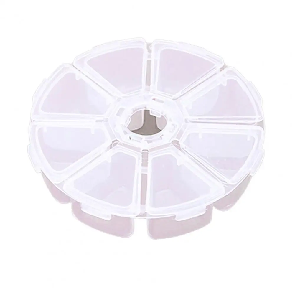 Характеристики: Круглая коробка для хранения с 8 сетками может помочь сохранить ювелирные изделия, рыболовные аксессуары, медицин и так далее.
