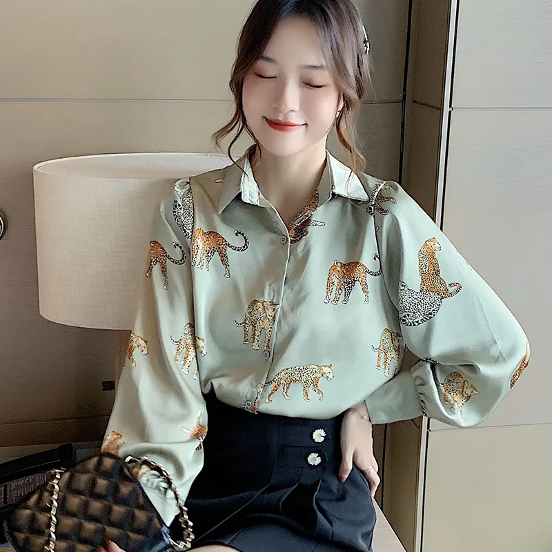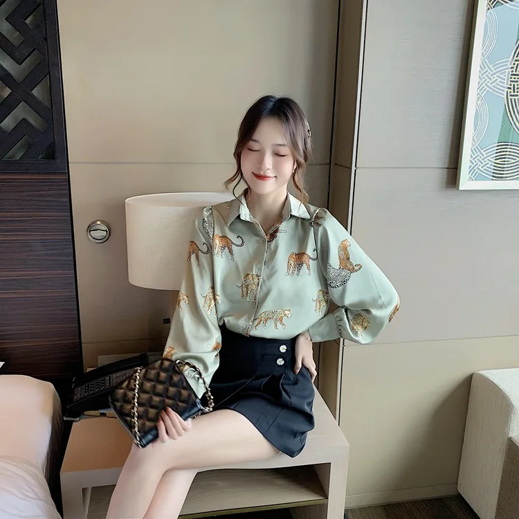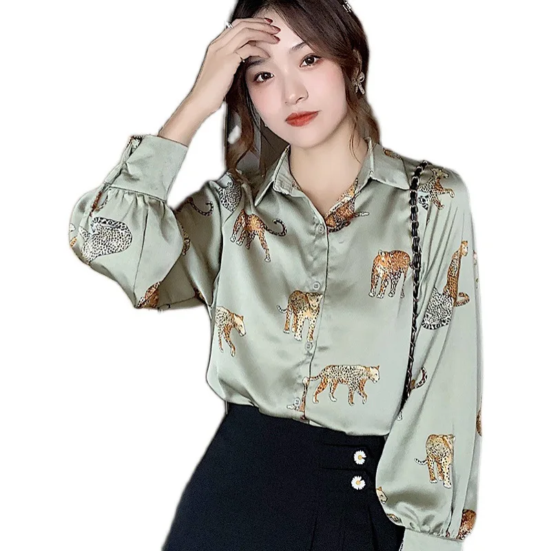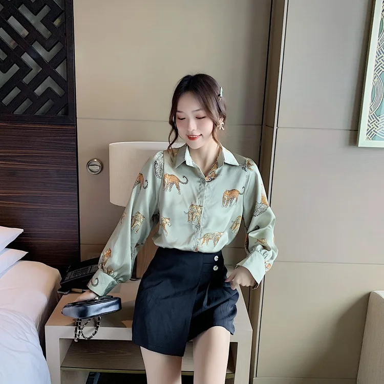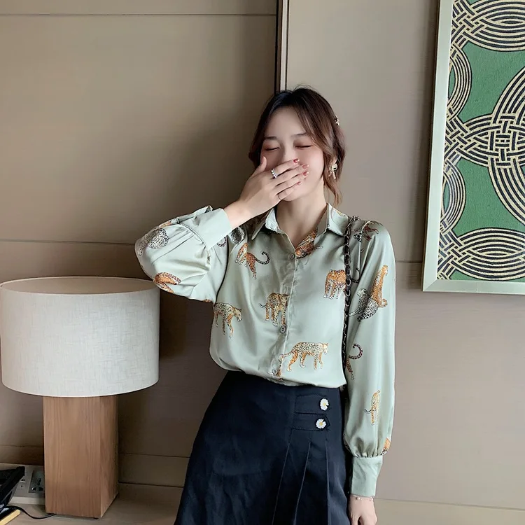 Женская шифоновая рубашка с длинным рукавом, свободная винтажная блузка с атласным принтом в европейском и американском стиле, новинка 2021