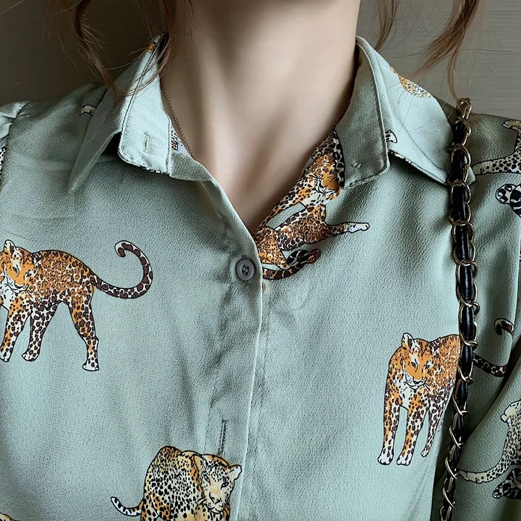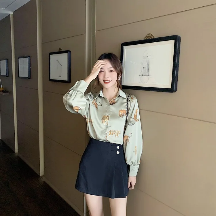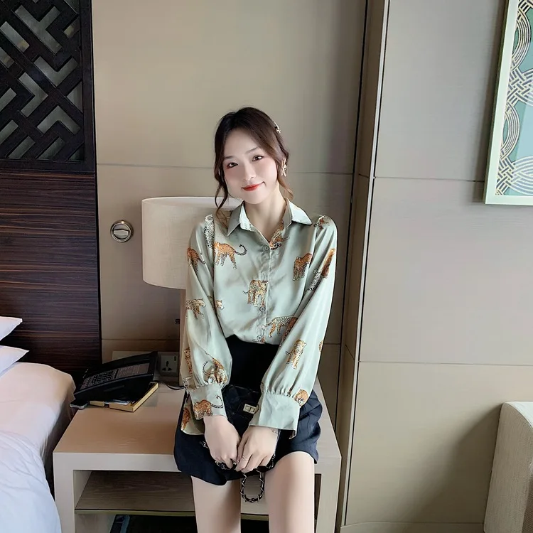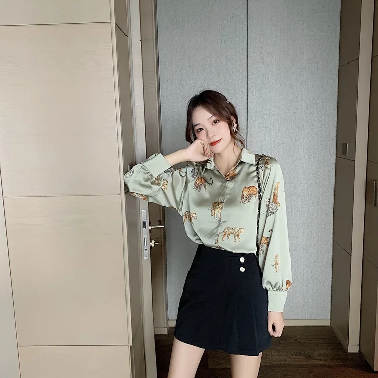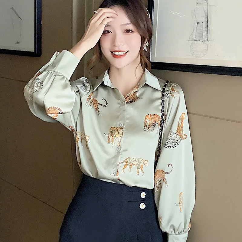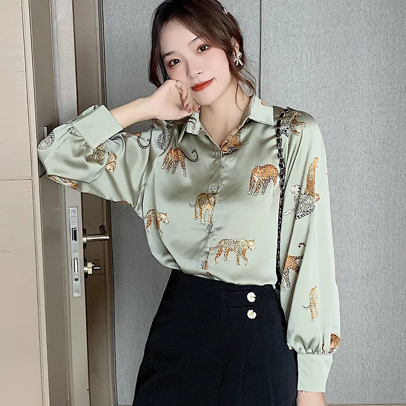 Женская шифоновая рубашка с длинным рукавом, свободная винтажная блузка с атласным принтом в европейском и американском стиле, новинка 2021