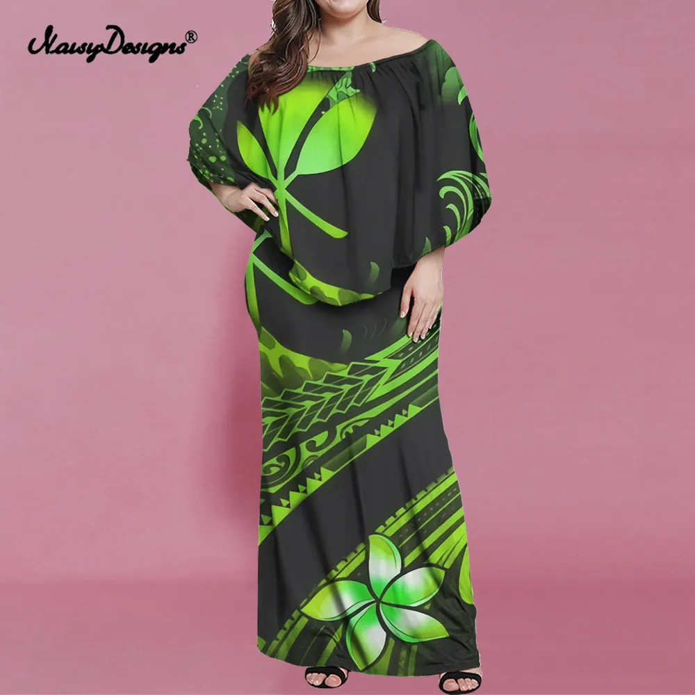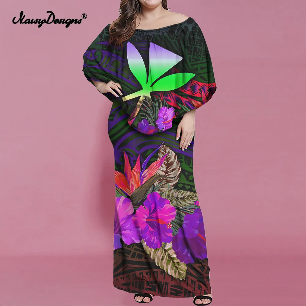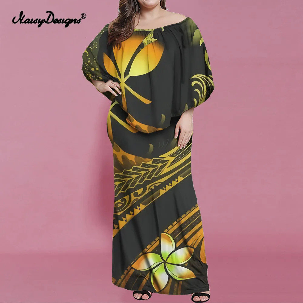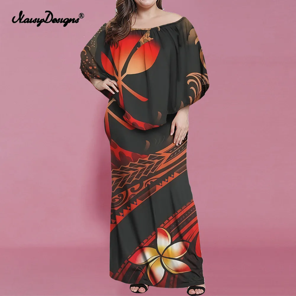 Noisydesignsкрасное женское платье с открытыми плечами и оборками, облегающее длинное платье 2021 размера плюс 4XL, гавайская полинезийская Плюмерия, элегантное платье для выпускного вечера