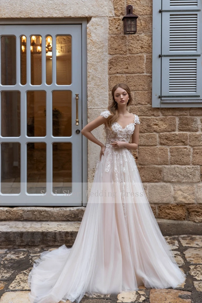Романтические летние свадебные платья, кружевной 3D топ с рукавом-крылышком, иллюзионные пляжные свадебные платья, платья для беременных невесты