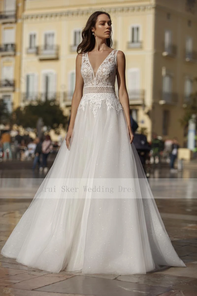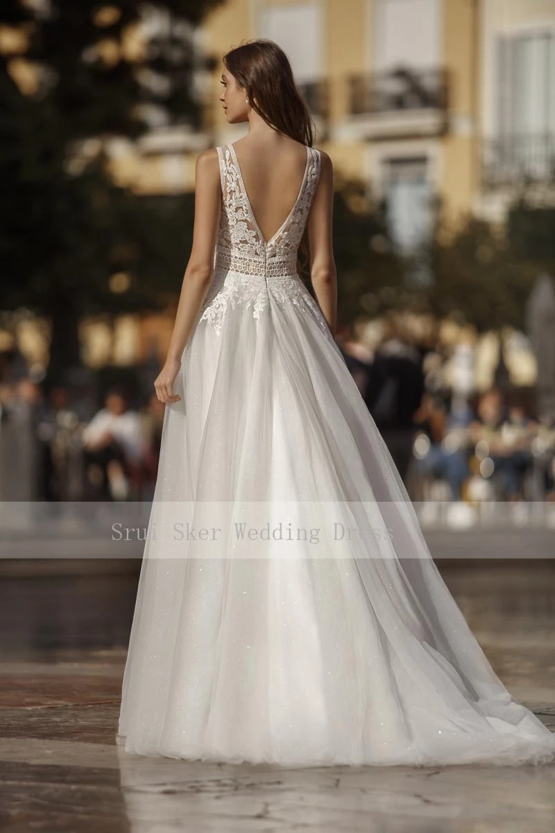 Женское свадебное платье с V-образным вырезом, открытой спиной и аппликацией