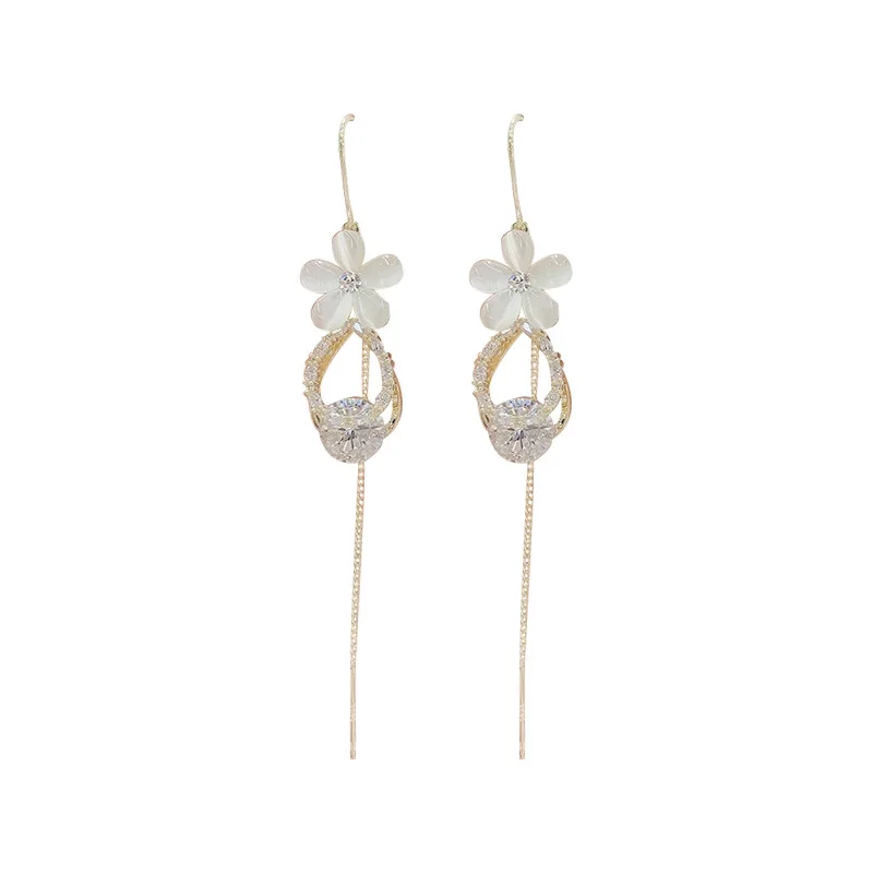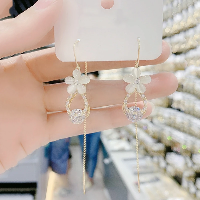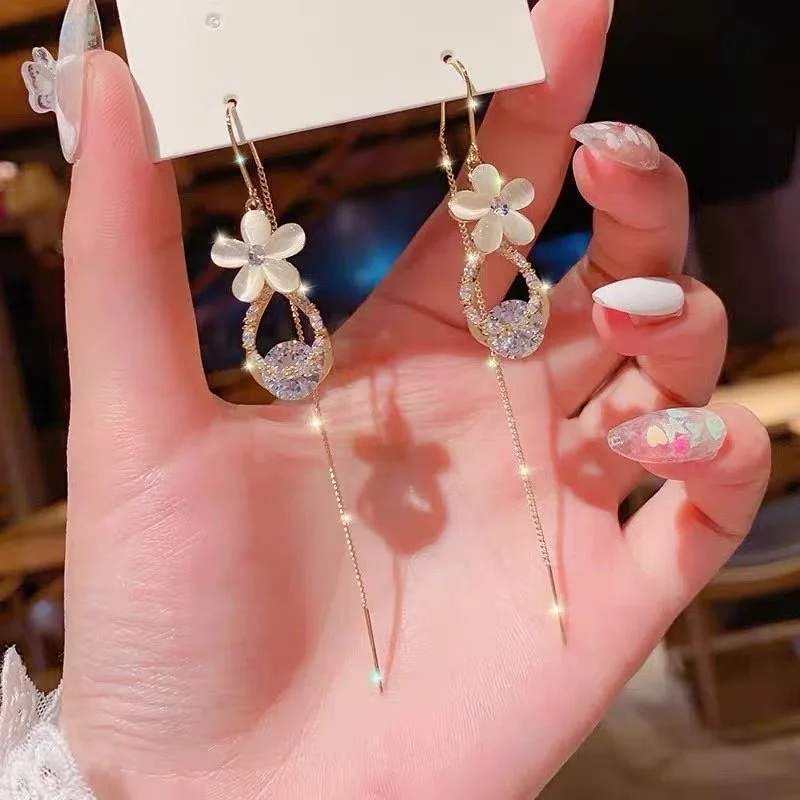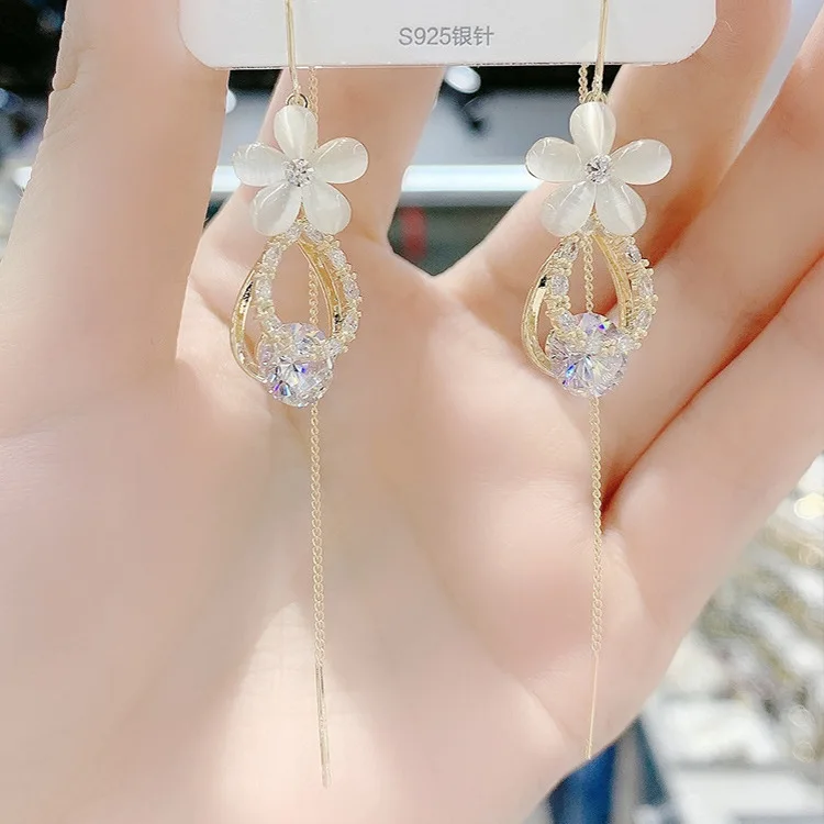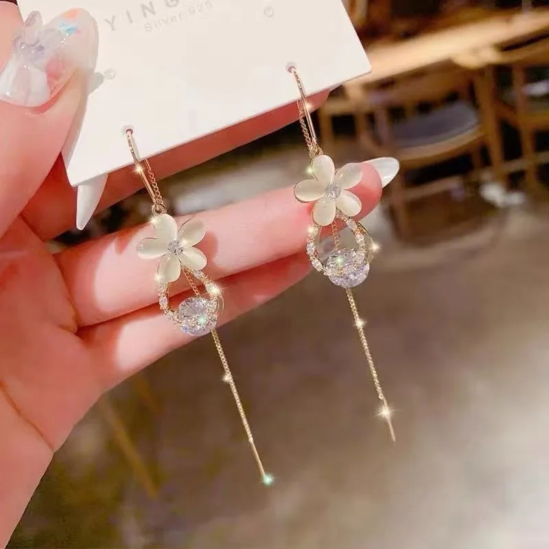 Название: модные серьги с опаловым цветком, изысканные стразы с кисточками, тренд 2021, висячие серьги, необычные серьги, Женские Ювелирные изделия