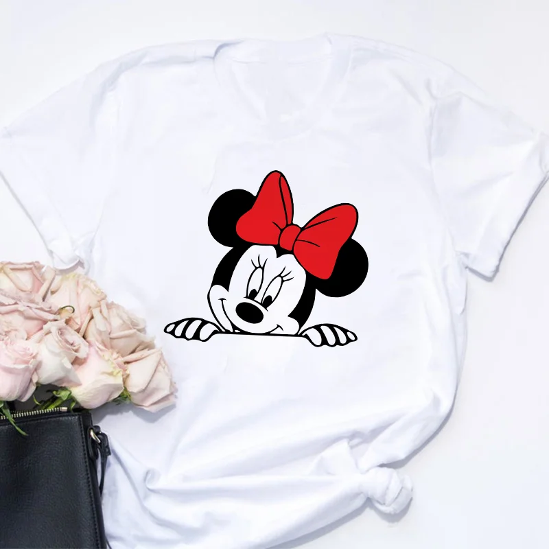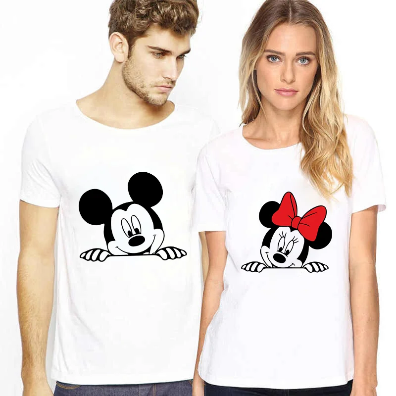Футболки женскиемужские с принтом Микки и Минни, с круглым вырезом