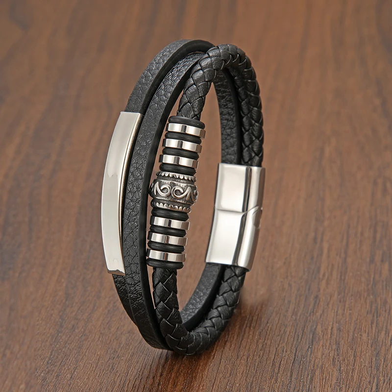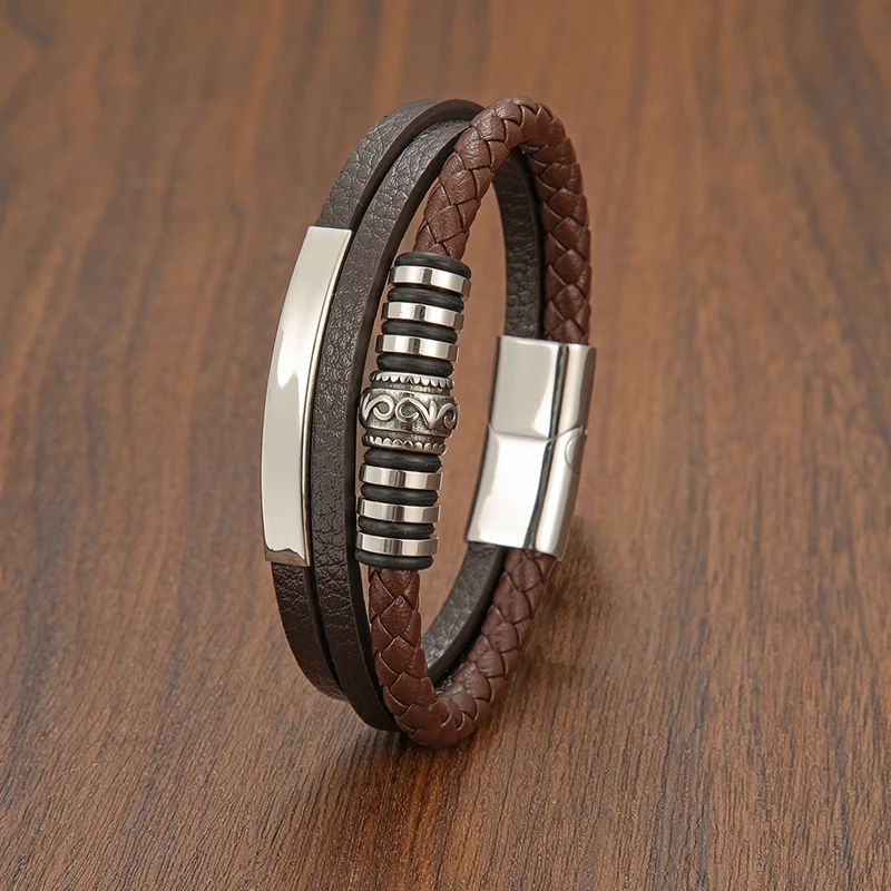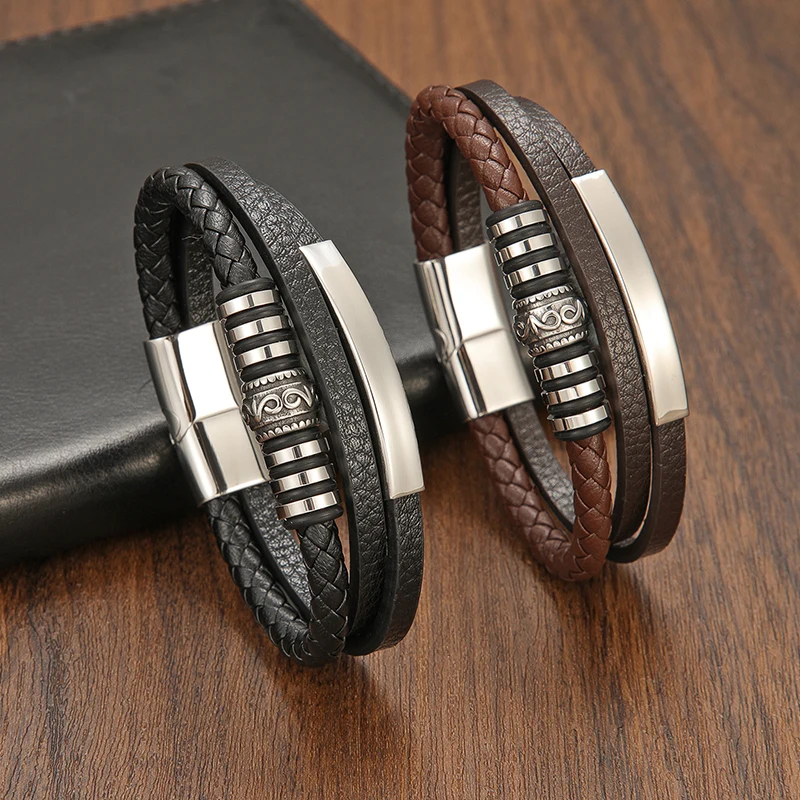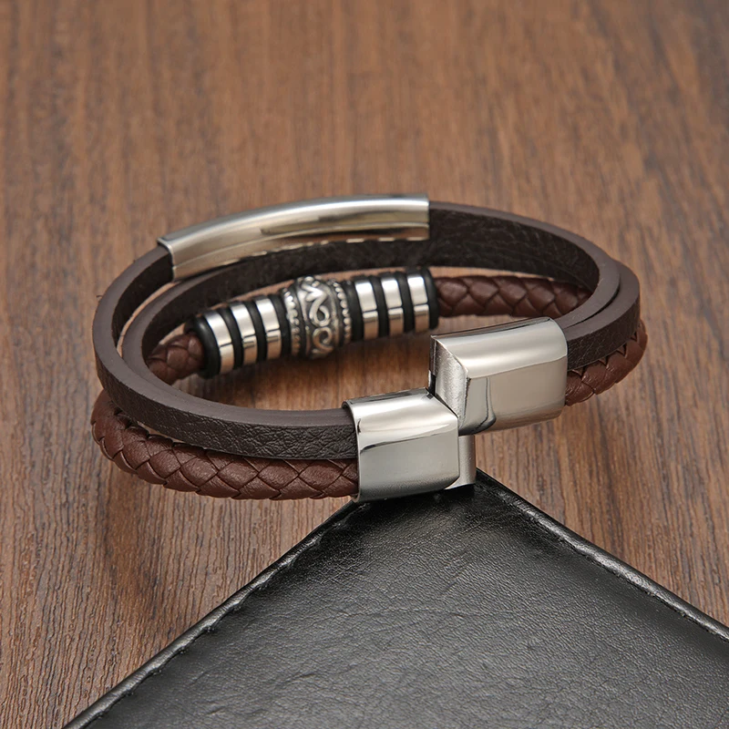 Браслеты мужские из нержавеющей стали, в стиле панк, кожаный цепной...