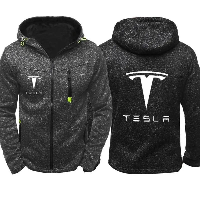 Толстовка мужская с капюшоном, повседневная кофта на молнии, с длинным рукавом, с принтом логотипа автомобиля Тесла, в стиле хип-хоп, Харадзюку