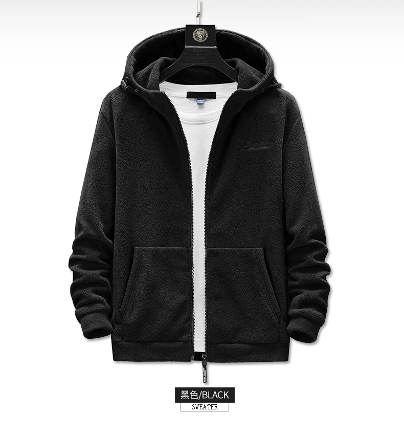 Model Numbermen's loose flannel cardigan sportswear solid color casual fleece Hooded Jacket