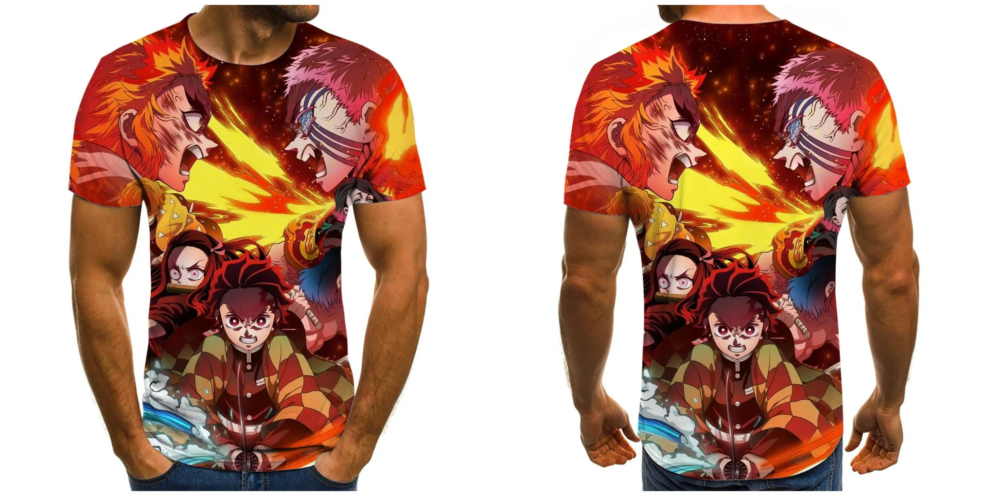 Рубашка Kimetsu No Yaiba для мужчин, аниме футболка с рассекающим д...