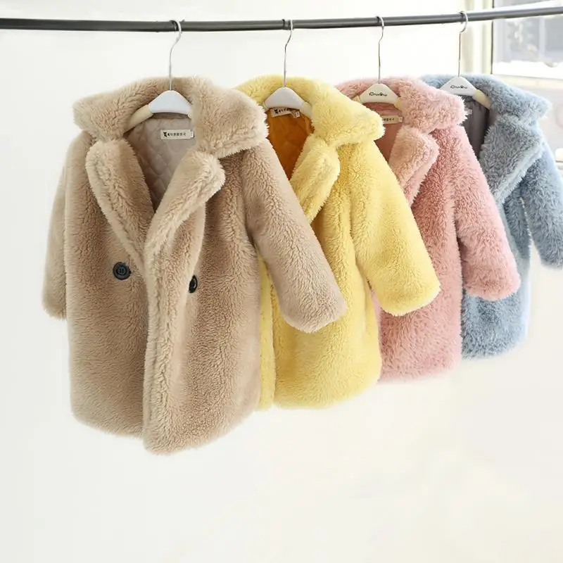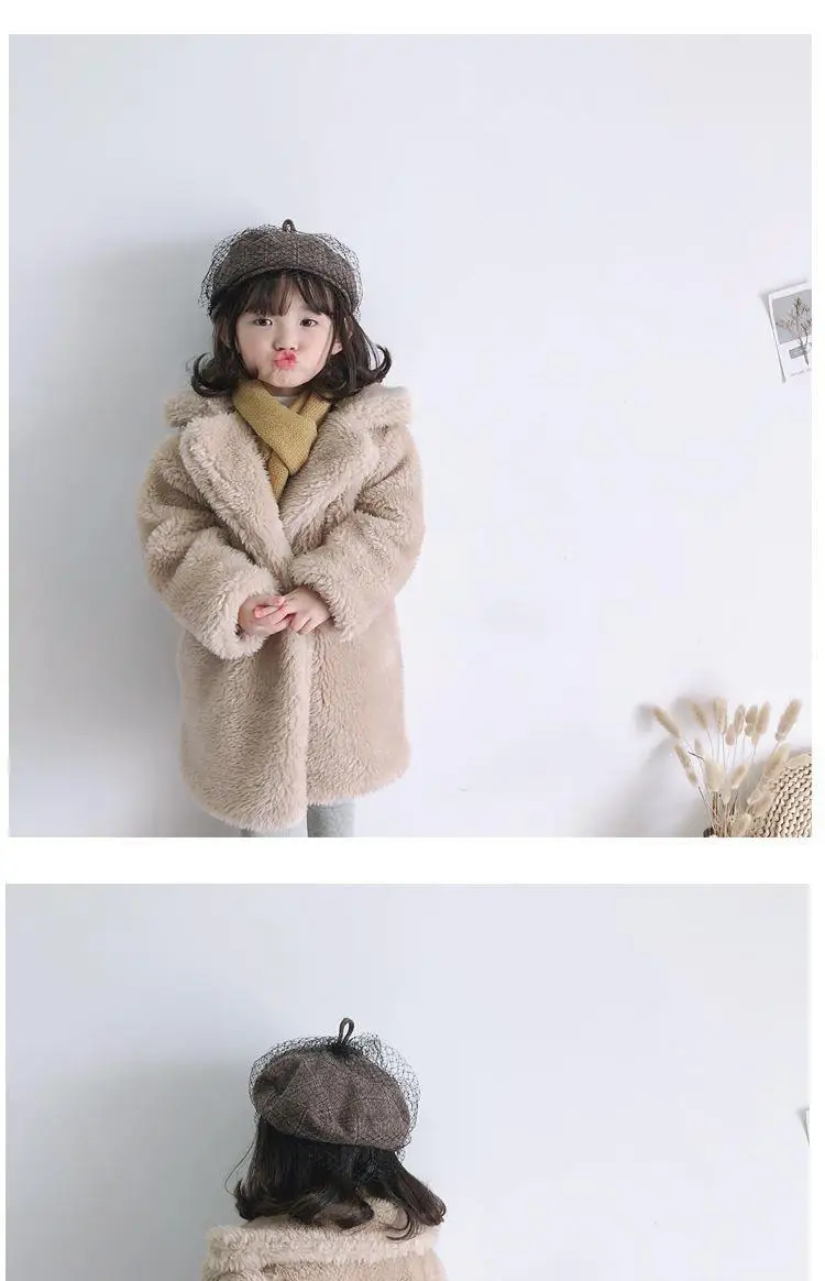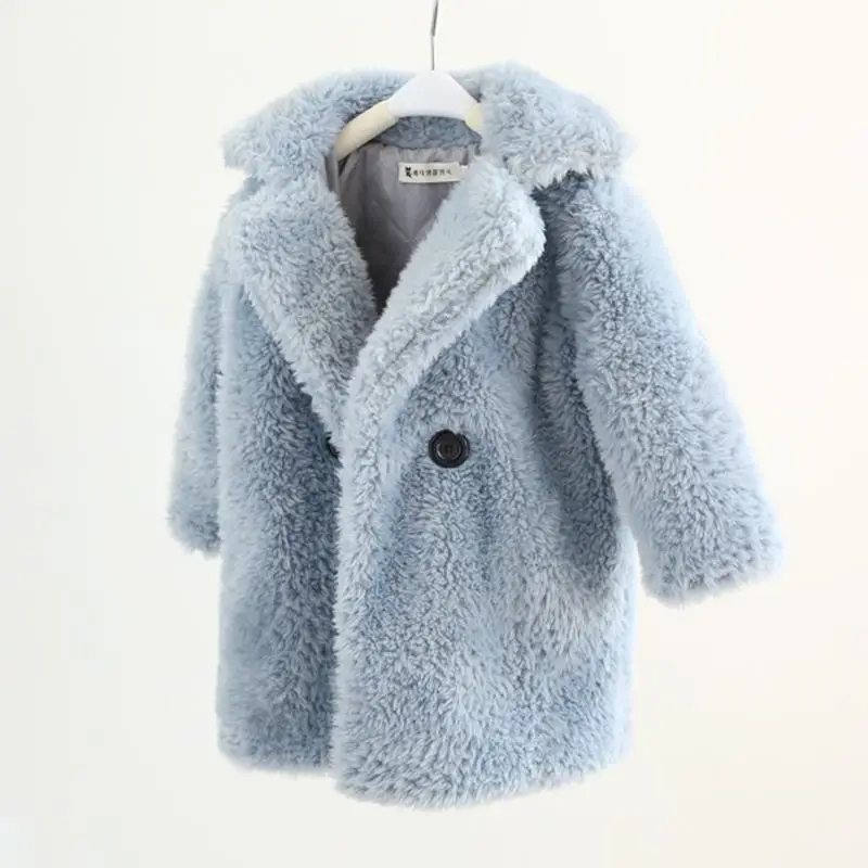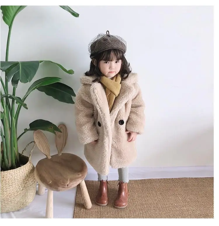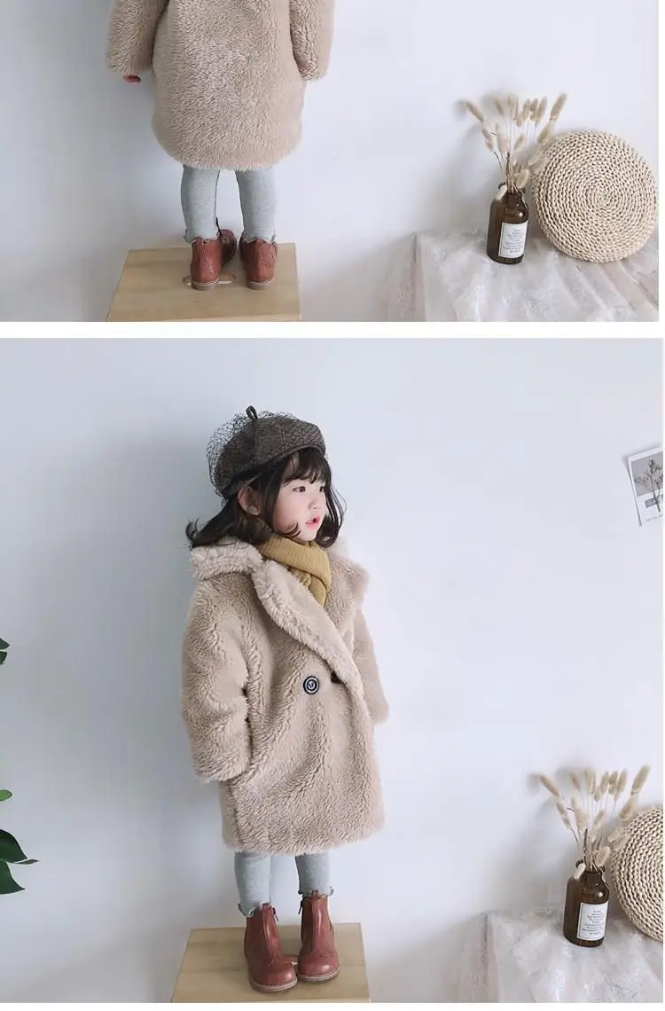 Зимняя детская одежда, утепленная теплая куртка с отложным воротником, длинное пальто для девочек, повседневная шерстяная Верхняя одежда на одной пуговице для девочек, C108