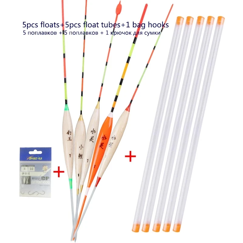 Посылка включает:5Поплавки + 3 поплавковых трубки + 1 мешок рыболовные крючки