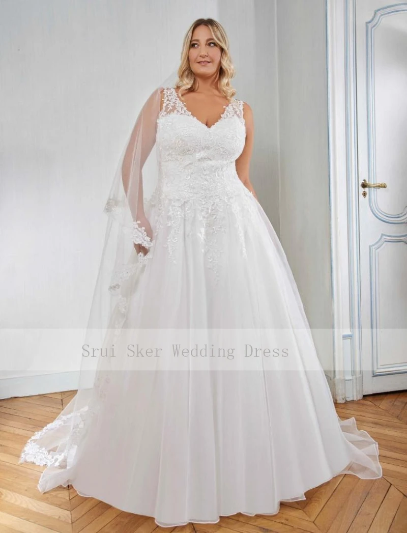 Новинка 2021, женское свадебное платье без рукавов, с V-образным вырезом, ТРАПЕЦИЕВИДНОЕ, кружевное, Пляжное свадебное платье, платье невесты большого размера