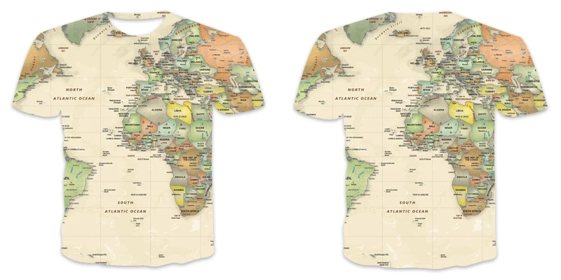 Мужская футболка с 3D-принтом, лето 2021, с картой мира, модная пов...