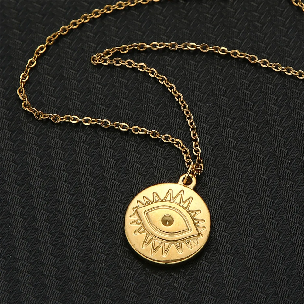 Ожерелье глаза Девы Марии из нержавеющей стали, ожерелье глаза для женщин, ожерелье с цепочкой, Круглый зловещий кулон