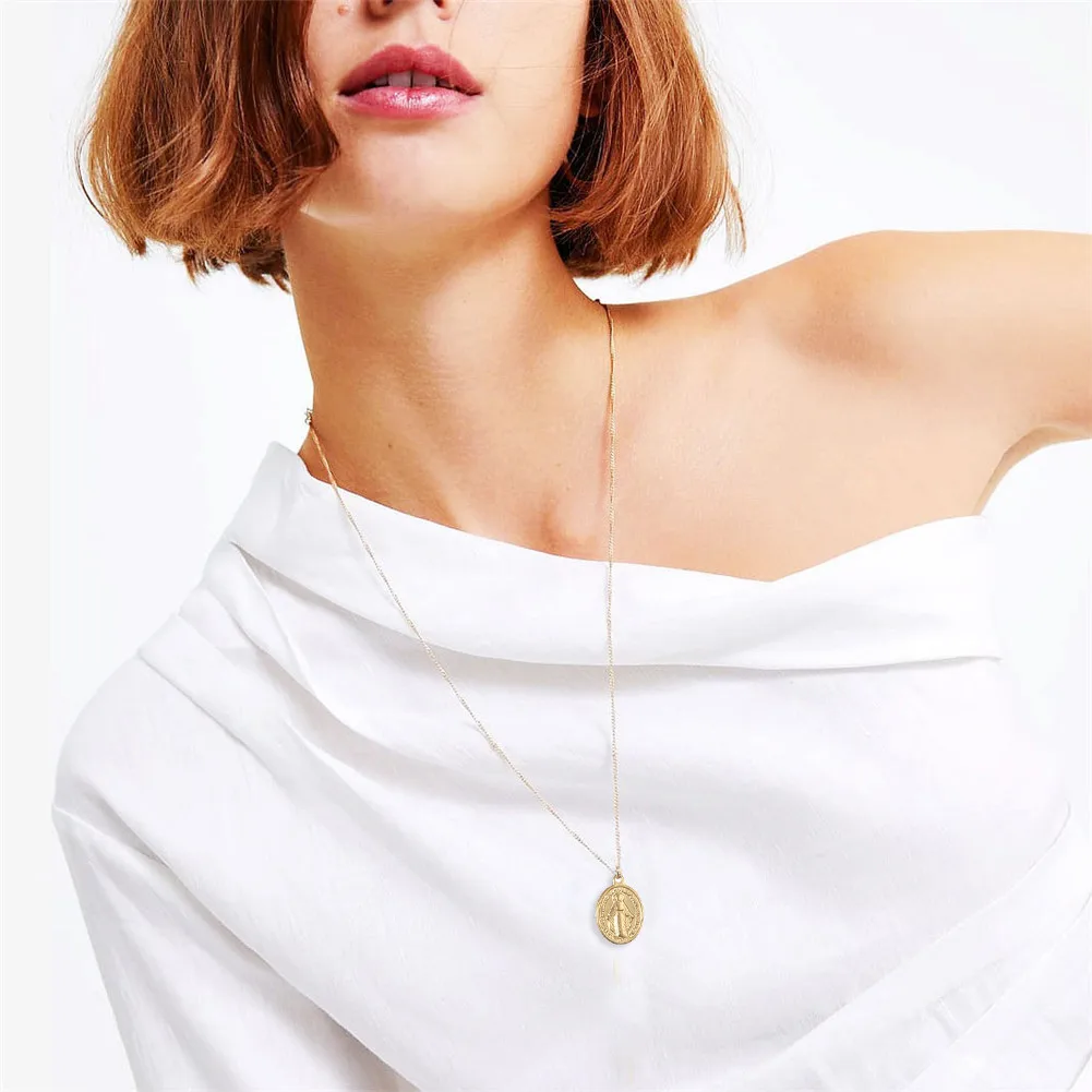 Женское колье с подвеской Дева Мария, из нержавеющей стали