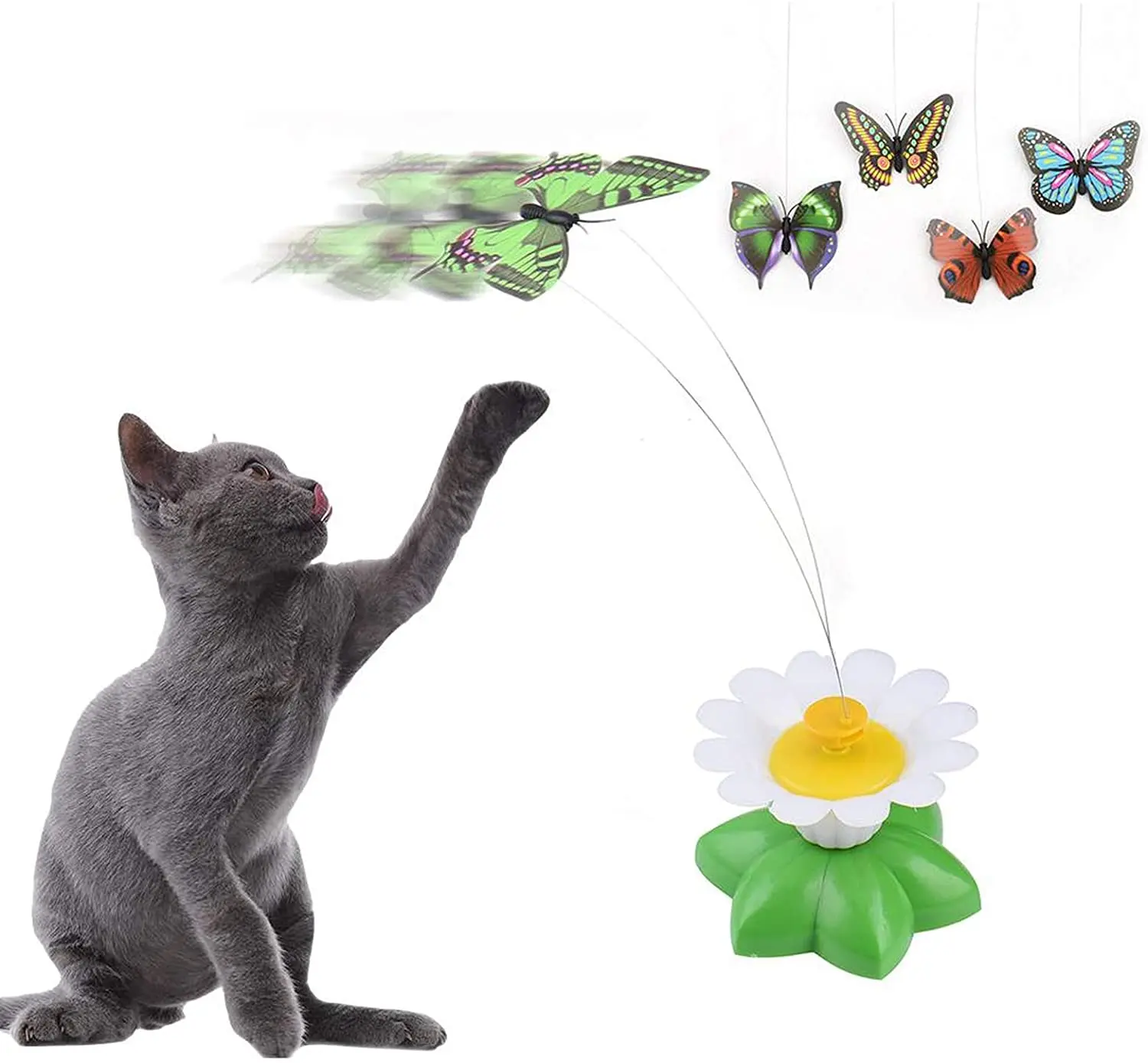 Электрические вращающиеся игрушки для кошек, игрушки для кошек, красочные сиденья для птиц в виде бабочек, забавные игрушки для животных, для кошек, котят, интеллект