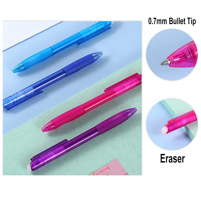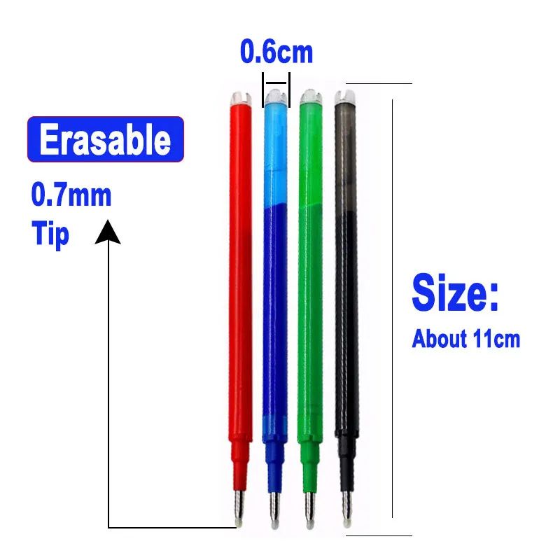 Характеристика:1. Совершенно новый фрикционный стирающийся ручки позволяют вам наслаждаться плавным написанием, оставляя место для ошибок. Запись, удаление, перезапись без повреждения документов.2. Плавность линий гелевыми чернилами, наконечника: 0,7 мм, 8 разных цветов. Нетоксичные чернила, без кислоты, без кровотечения, легко стираются. Ластик находится в верхней части наконечника ручки, выдвигается поворотным переключателем.Тип пополнения: 0,7 мм наконечники для пулиЦвет чернил: красный/синий/черный/зеленый/небесно-голубой/фиолетовый/розовый/оранжевый чернилаРазмер:Ручка около 14,5 см.Заправка около 11 см.Посылка включает в себя:12 шт./компл. x Волшебная стираемая гелевая ручка