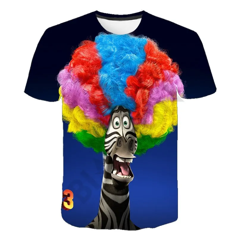 Летние популярные Мадагаскарские фигуры, Лев, Зебра, жираф, обезьяна, пингвин, бегемоты, Детские футболки для мальчиков, девочек, детские топы, футболки