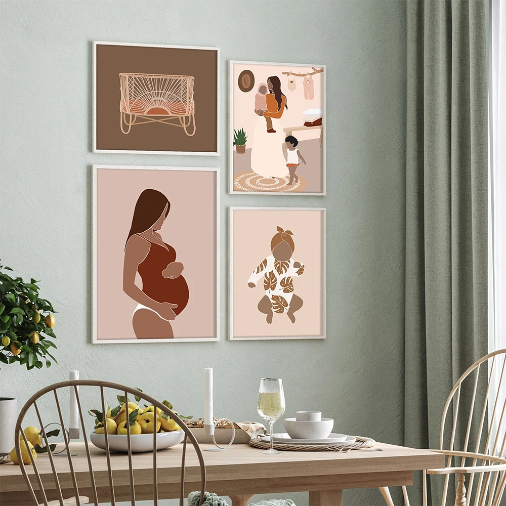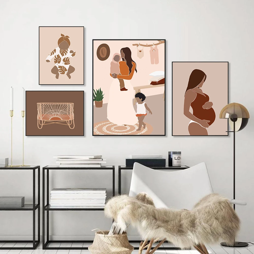 Плакат мать и сын с принтом черной Африканской женщины для беременных Бохо Терракотовая Настенная картина на холсте украшение для детской кровати