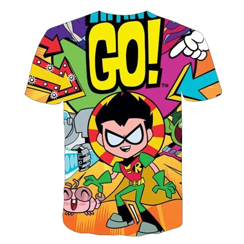 Топы для маленьких мальчиков и девочек, футболка с 3D принтом, Детская футболка с мультипликационным принтом титанов, одежда для подростков, Детская летняя одежда большого размера для мальчиков