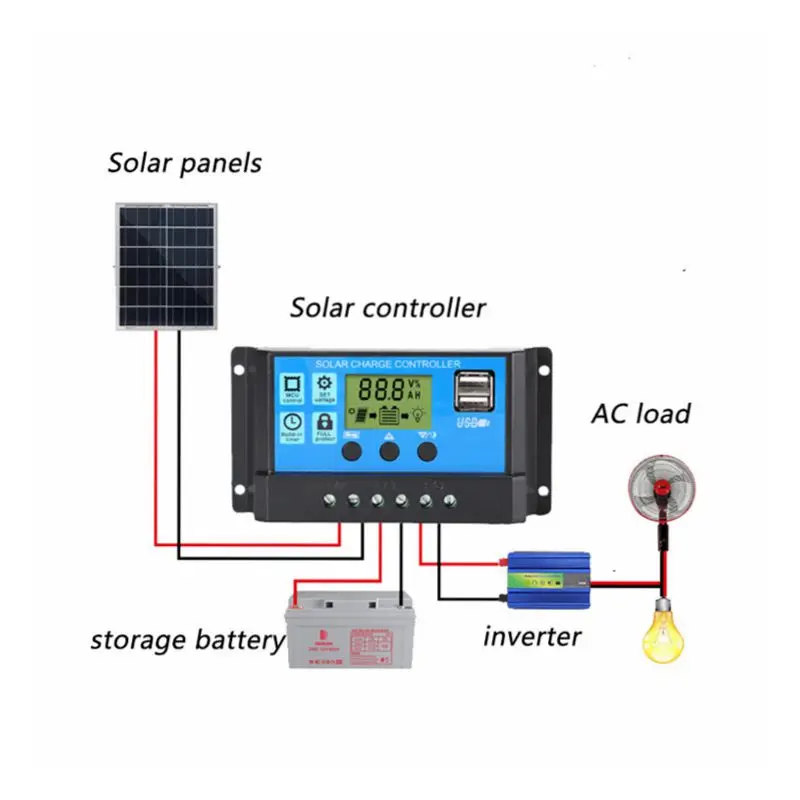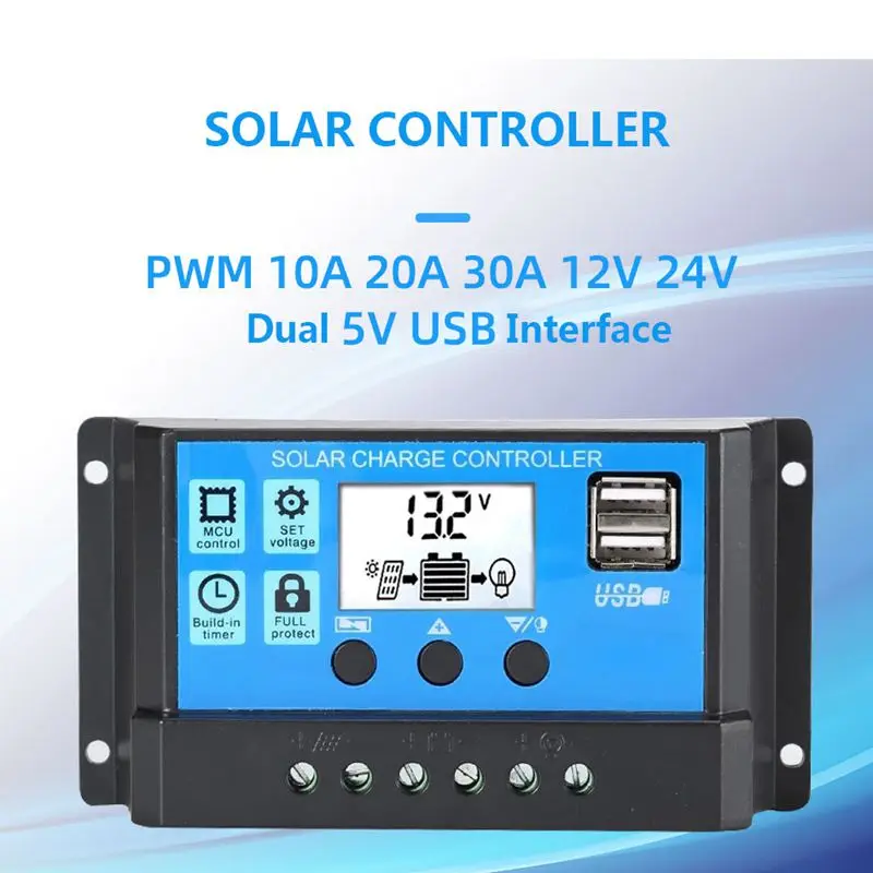 ШИМ-контроллер заряда солнечной батареи, с ЖК-дисплеем, двойным USB-выходом, мощностью 5 В, 605040302010 А, 1224 В