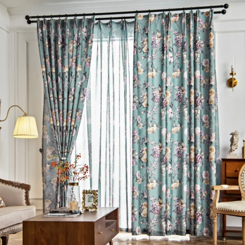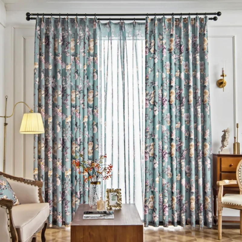 Плотные шторы в американском сельском стиле с цветочным принтом, дл...