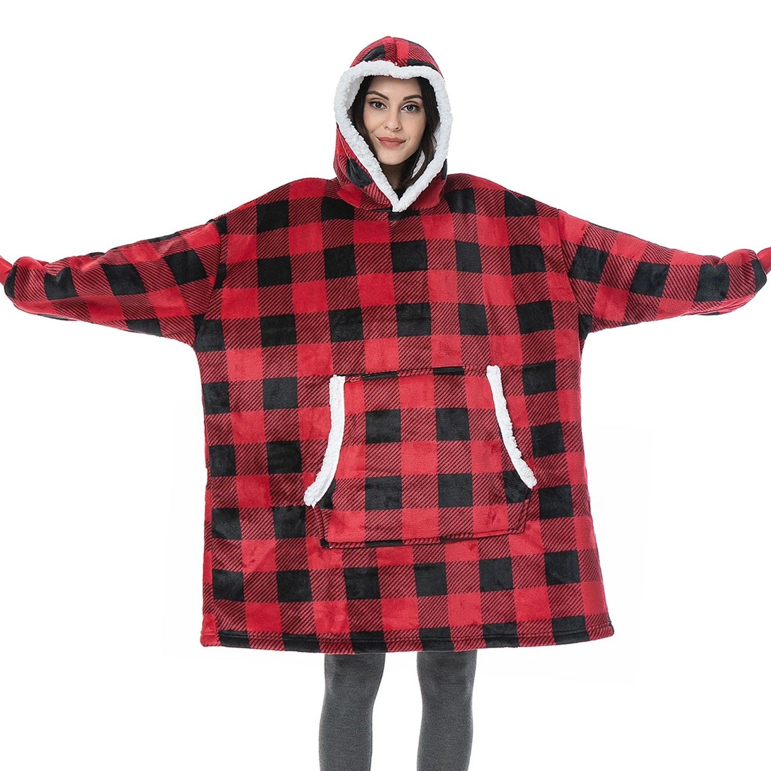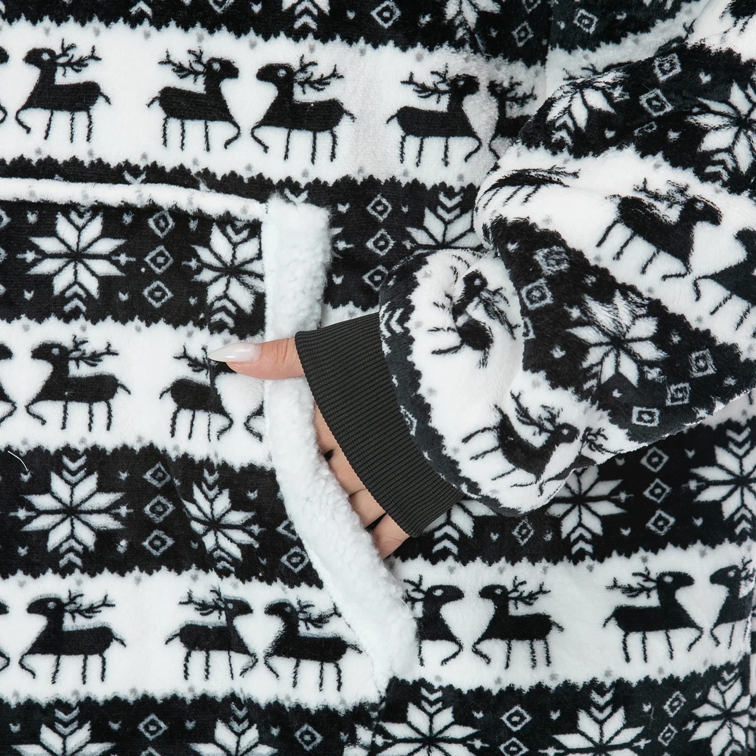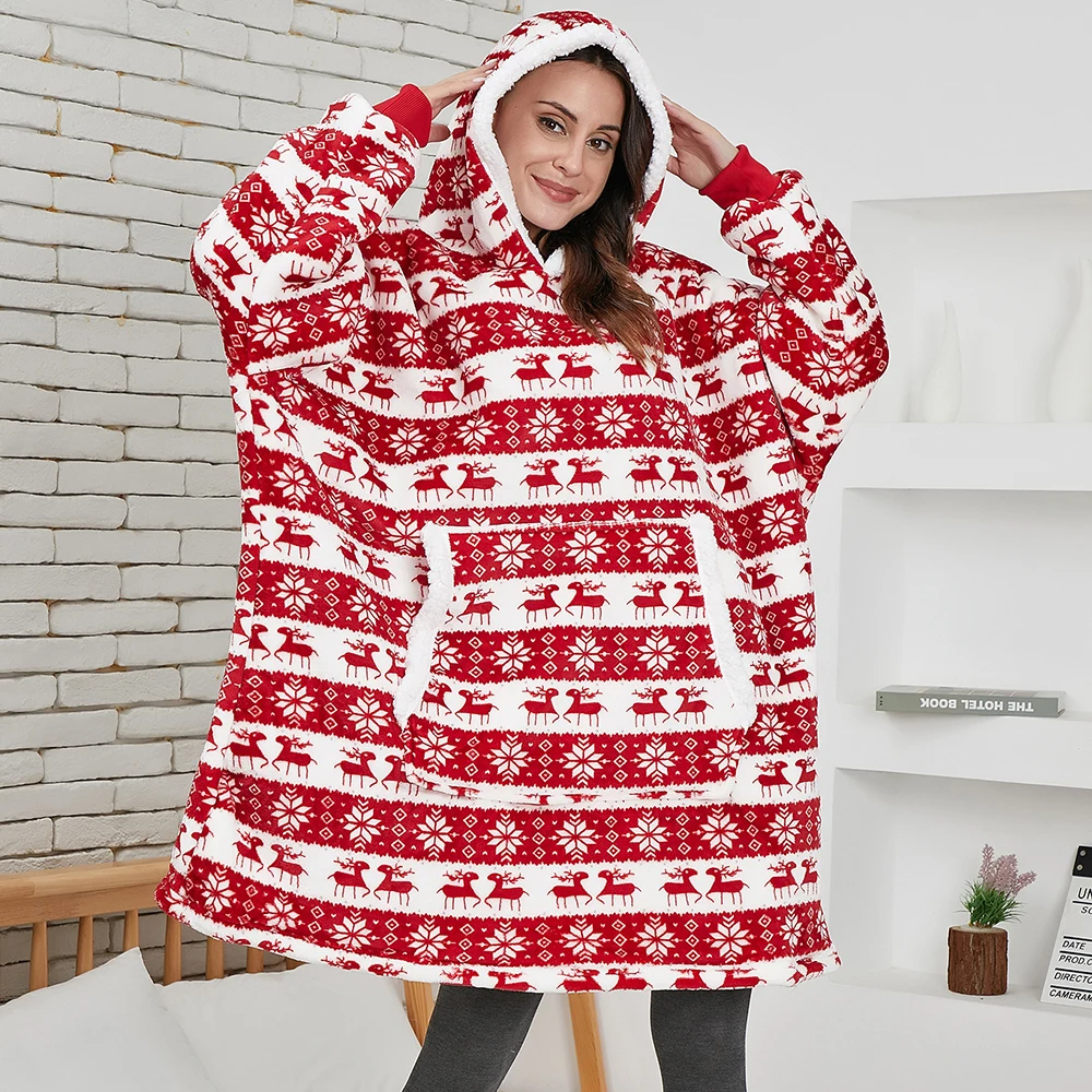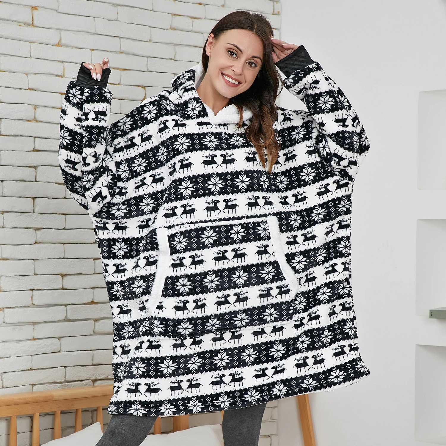 Толстовка с капюшоном с принтом оленя, Женская флисовая Рождественская Толстовка большого размера, гигантское ТВ одеяло с рукавами, Свободный пуловер, рождественские подарки