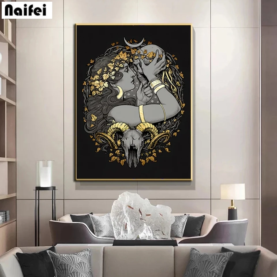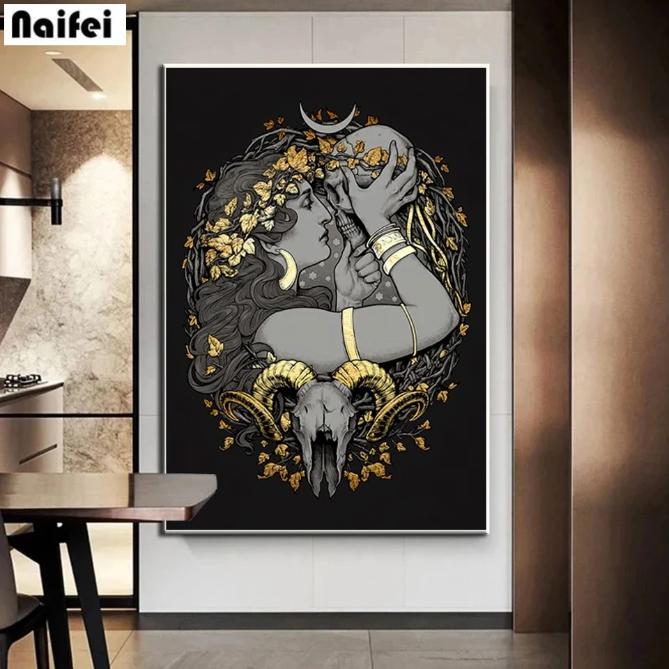 Готическая богиня, Череп, настенная живопись 5d, сделай сам, Полный алмаз, вышивка крестиком, мифология, рисунок, стразы, мозаика, домашний декор, подарок